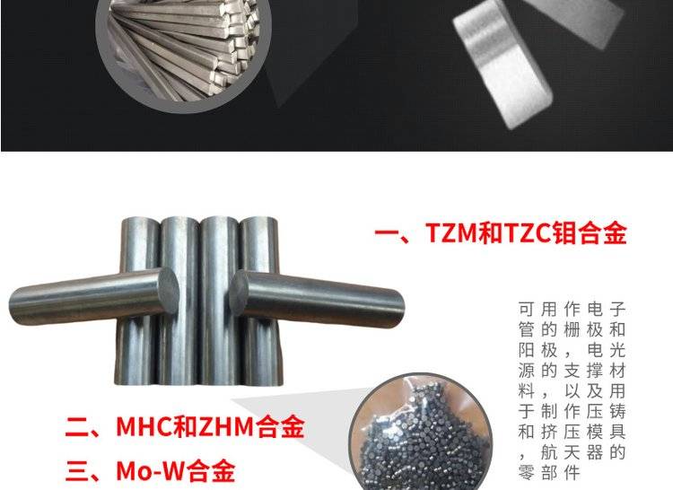 TZM高温钼合金棒 电光源零件电真空器件 加工定制零切